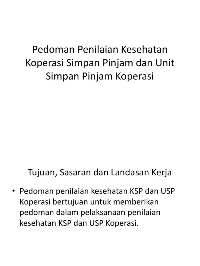 Aplikasi penilaian tingkat kesehatan unit simpan pinjam (usp) koperasi pegawai republik indonesia. Masih terbatasnya jumlah dewan pengawas syariah untuk . Koperasi simpan pinjam dengan volume diatas 2,5 milyar belum diaudit oleh akuntan publik. Dari laporan yang dikirim akan dilakukan penilaian kesehatan usp dan ksp guna . Pinjam di kecamatan bantul kabupaten bantul tahun 2017 dilihat dari aspek.